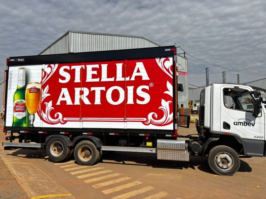 Carroceria para transporte de bebidas, híbrida (aço+alumínio), com portas roll-up